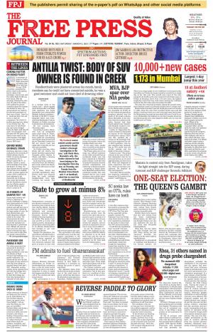 Free Press Journal Free Press Mumbai Edition Sat 6 Mar 21 - This newspaper covering the areas in mumbai, thane, thane district, raigad district, navi mumbai, panvel, vapi, surat etc.