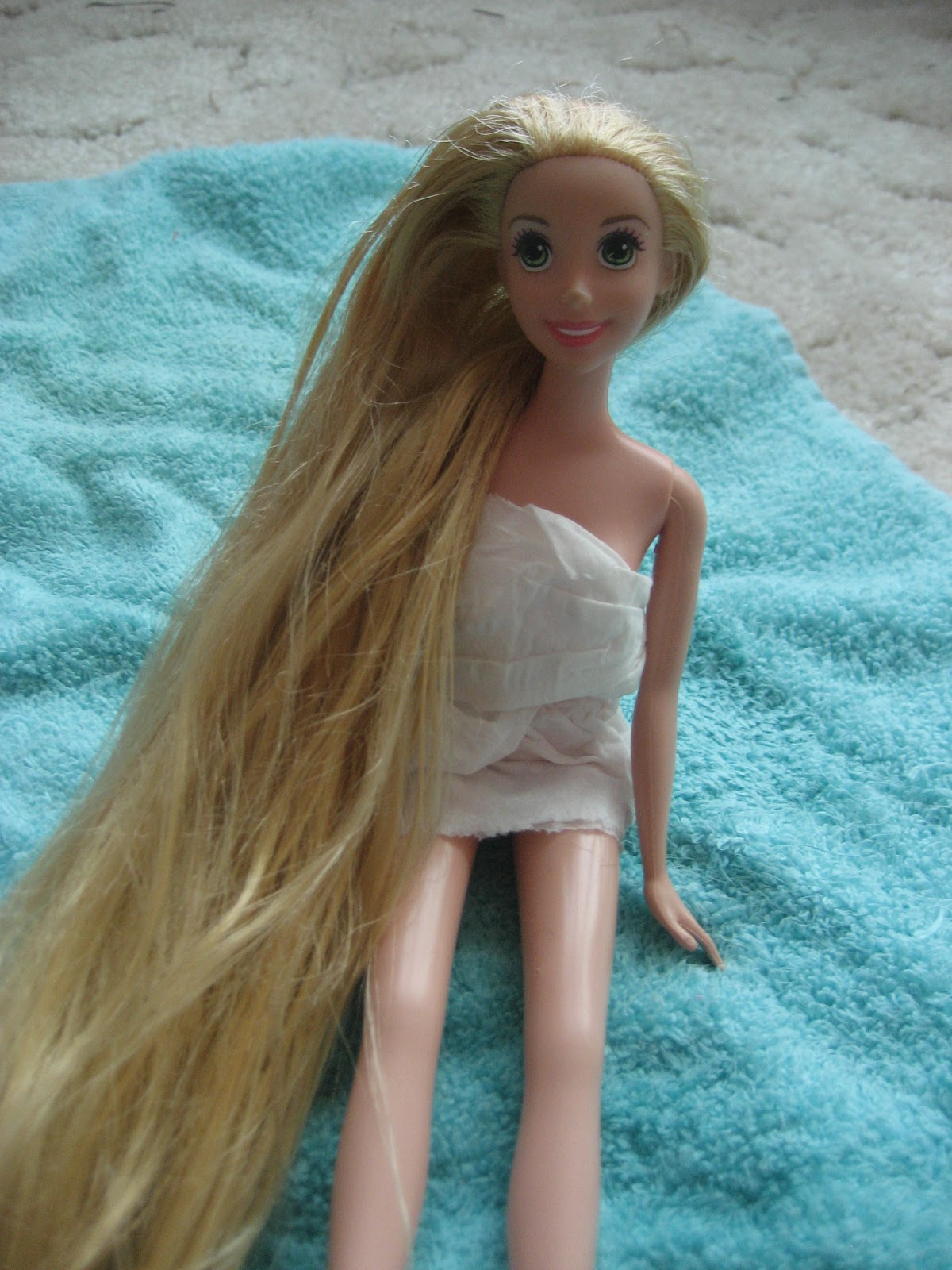 How To Detangle Doll Hair : Once the hair was all smoothed out we towel dried it combed it so it was laying the way wanted and then let it dry. How To Detangle Doll Hair / My sister recently bought her and she doesn't like how poof the hair is.