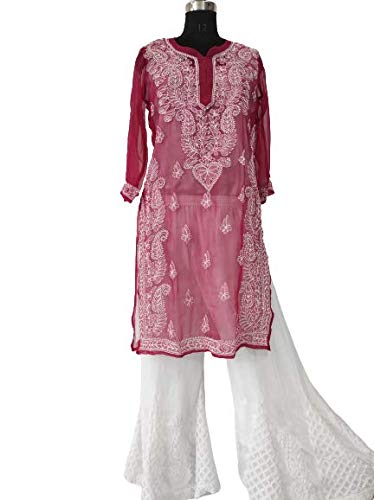 Georgette Chikankari Kurtis Online Clearance Shop - Lucknowi chikankari red kurta for women,handmade embroidered kurti,ethnic kurtis,beautiful ethnic style kurti,cotton kurti.